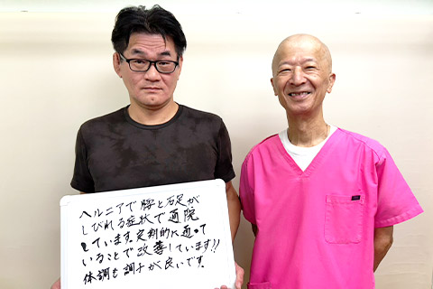 ヘルニアで腰と右足がしびれる症状で通院しています。